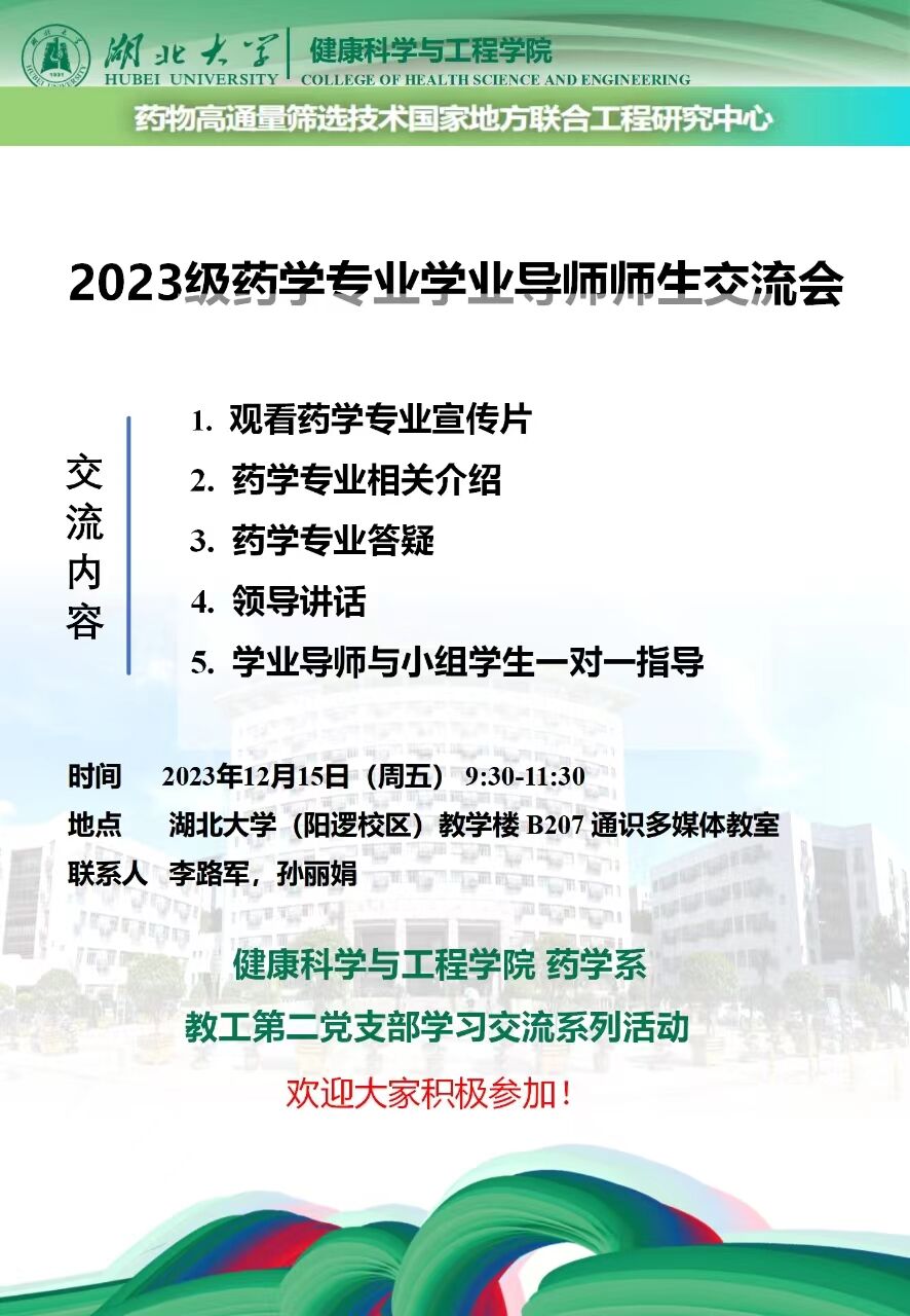 12月15日,2023级药学全体学业导师联合威廉希尔教师第二党支部,前往威廉希尔官方网站阳逻校区(通识教育公司)与2023级药学专业员工开展了面对面的师生交流会。